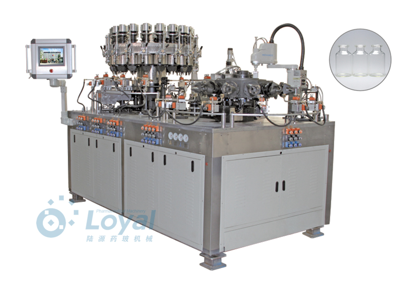 西林瓶生產(chǎn)線包括:自動(dòng)上管、自動(dòng)成型、經(jīng)機(jī)械手轉(zhuǎn)換至前端檢測(cè)線(也叫生產(chǎn)管控)、檢測(cè)線檢測(cè)的項(xiàng)目:1、瓶口內(nèi)外徑 2、瓶身長(zhǎng)短 3、瓶身外徑 4、瓶口邊厚 5、瓶底內(nèi)凹尺寸檢測(cè);經(jīng)檢測(cè)后的合格品再用機(jī)械手夾盤(pán)轉(zhuǎn)換至退火爐網(wǎng)帶上,經(jīng)高溫減除應(yīng)力后再降溫,通過(guò)氣動(dòng)吸盤(pán)將回火后的小瓶轉(zhuǎn)換至后端檢測(cè)線,后端檢測(cè)(也是重檢也叫終檢),經(jīng)后端拍照檢測(cè)項(xiàng)目